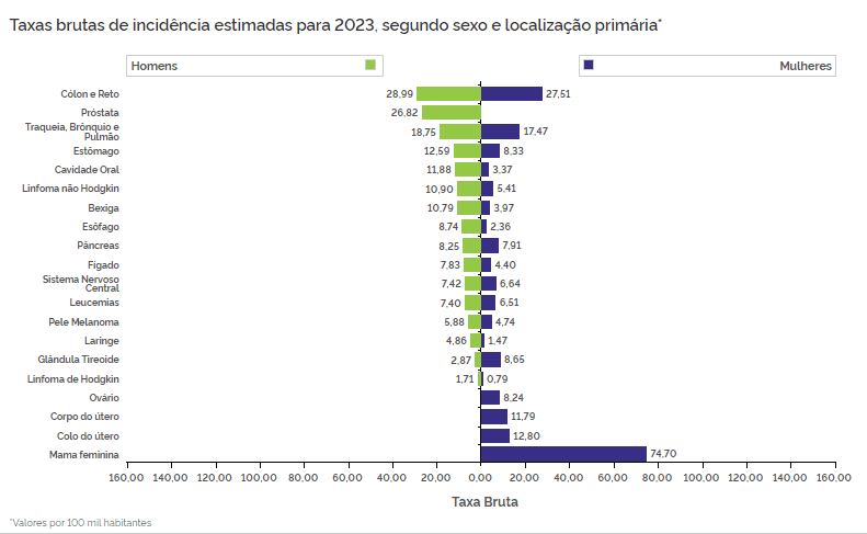 O Instituto Nacional de Câncer (INCA) publicou na última semana as estimativas para novos casos de câncer em todo o país. O Paraná deve registrar mais de 36,9 mil novos casos da doença apenas no próximo ano. Já na capital, a instituição estima cerca de 6.080 diagnósticos, sendo os cânceres de cólon, reto e próstata os mais comuns em homens; e os de cólon, reto e mama os mais comuns nas mulheres.